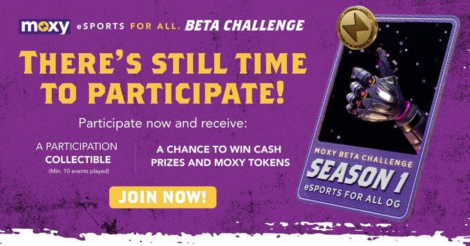 Signing up for a Moxy Club account and completing the required Know Your Customer (KYC) checks will see players receive 1,000 MOXY “testnet” tokens. Every player needs these tokens to participate in the Beta Challenge, and has the opportunity to add 50 MOXY to the initial amount for every referral who successfully registers (including completing KYC). The eSports industry has experienced massive growth over the years, with innovation around blockchain and GameFi adding to the overall appeal for players looking to play and earn.